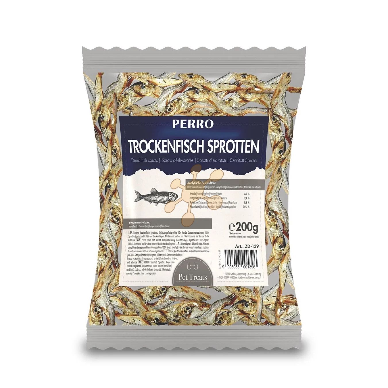 Sušené šproty PERRO jsou celé, šetrně sušené mořské ryby – bohaté na omega mastné kyseliny, vitamíny a minerály, které nabízejí cennou přírodní odměnu pro psy i kočky.